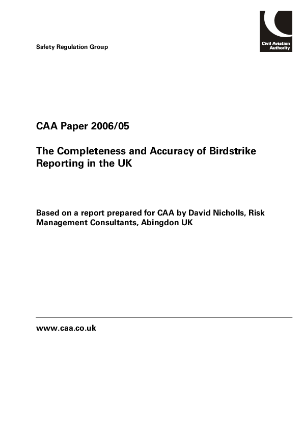 CAA Paper 2006/05: The Completeness and Accuracy of Bird Strike Reporting in the UK