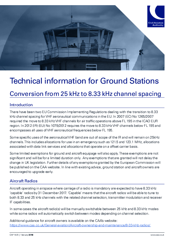 CAP 1573: Conversion from 25 kHz to 8.33 kHz channel spacing