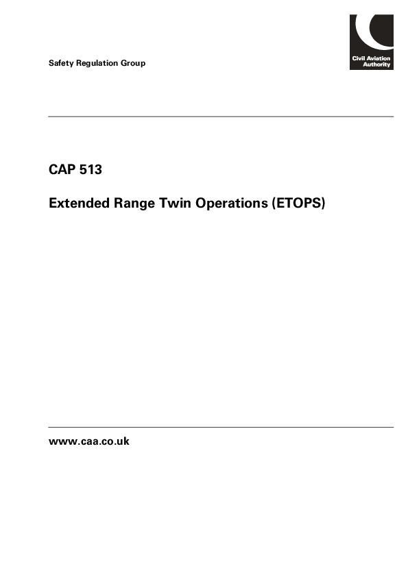 CAP 513 - Extended Range Twin Operations (ETOPS)