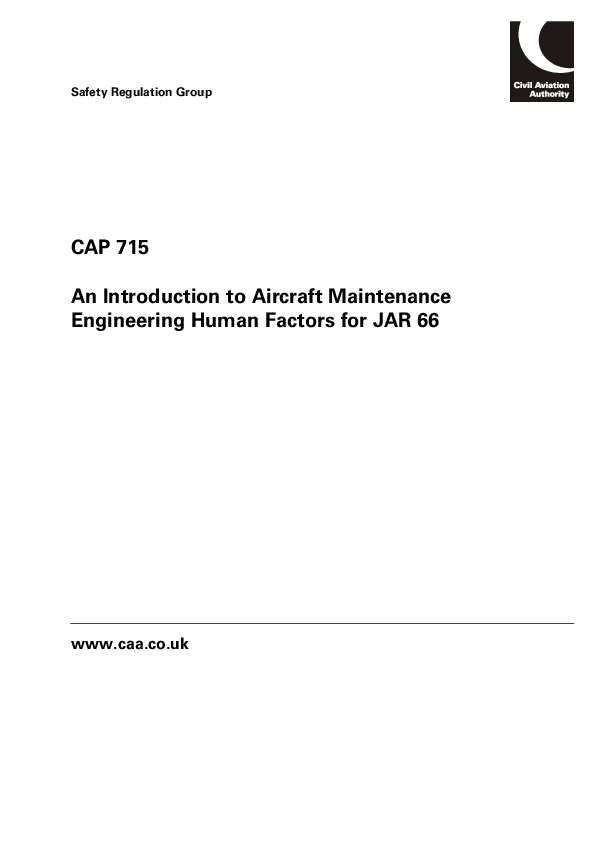 CAP 715 - An Introduction to Aircraft Maintenance Engineering Human Factors for JAR 66