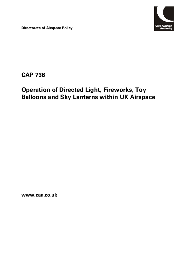 CAP 736 - Operation of Directed Light, Fireworks, Toy Balloons and Sky Lanterns within UK Airspace