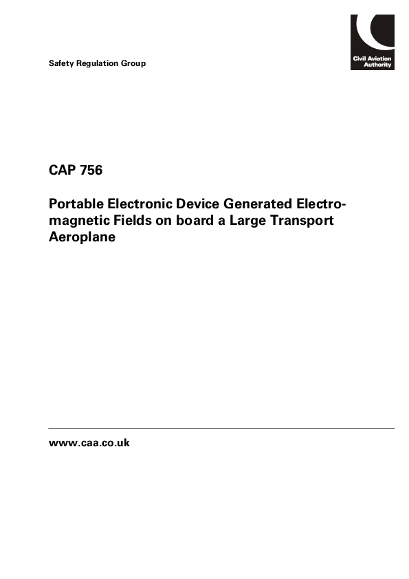 CAP 756 - Portable Electronic Device Generated Electro-magnetic Fields on board a Large Transport Ae