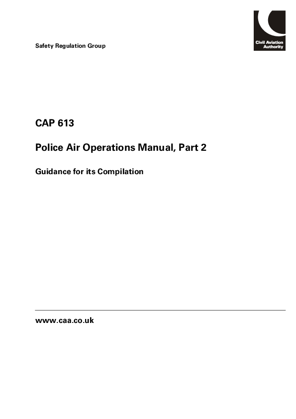 CAP613: Police Air Operations Manual, Part 2 - Guidance for its Compilation; April 2005.