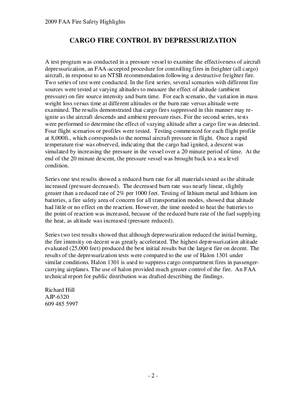 Cargo Fire Controlled by Depressurization