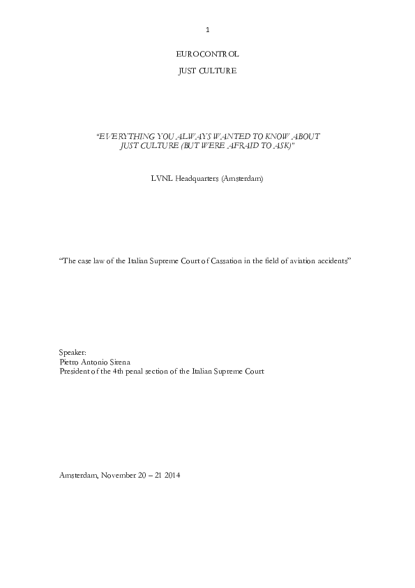 The case law of the Italian Supreme Court of Cassation in the field of aviation accidents