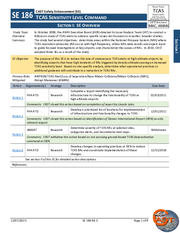 CAST - SE 186 R4.5 TCAS Sensitivity Level Command