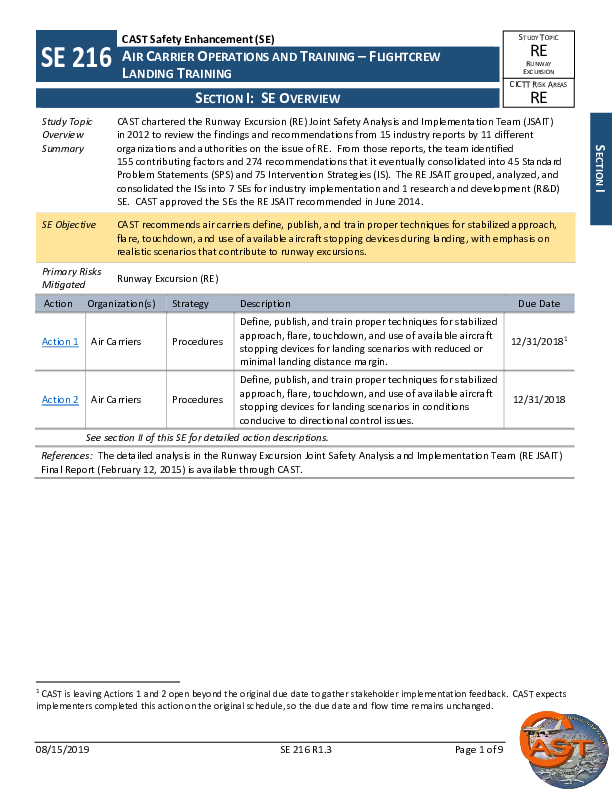 CAST SE 216 R1.3 - RE - Air Carrier Operations and Training - Flightcrew Landing Training