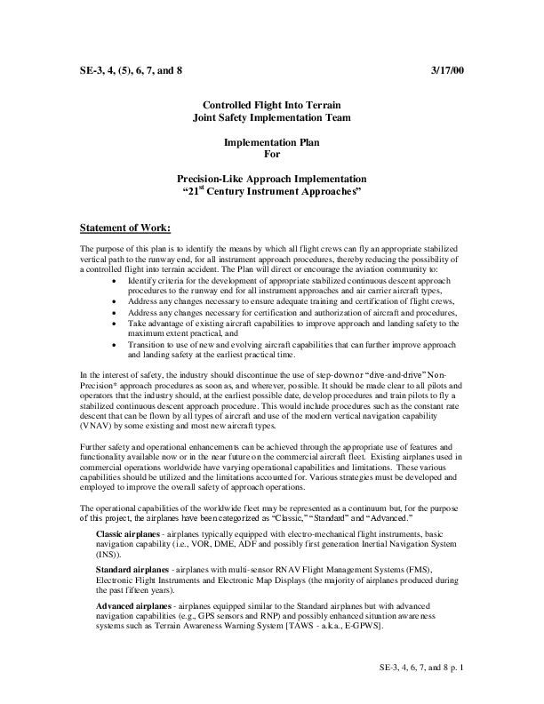 Detailed Implementation Plan for Safety Enhancements 3 through 8 - Controlled Flight Into Terrain - Joint Safety Implementation Team - Implementation Plan For Precision-Like Approach Implementation “21st Century Instrument Approaches”