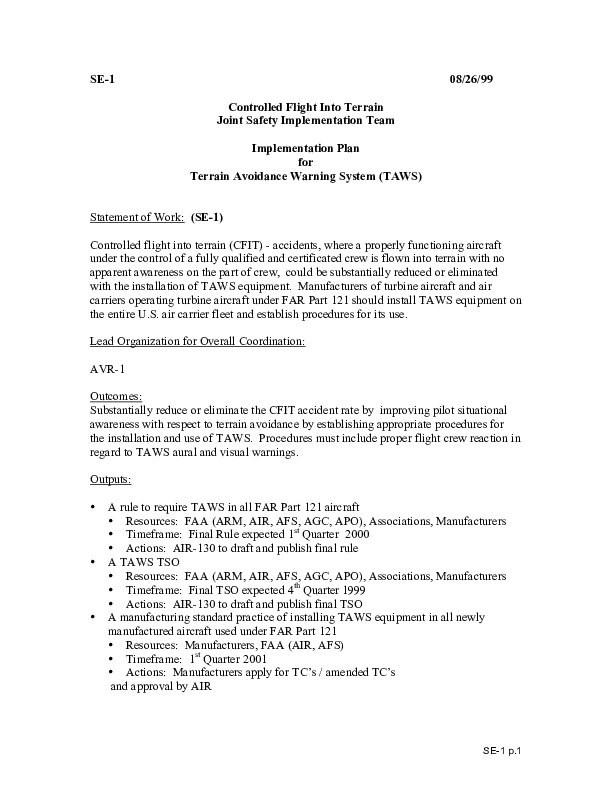 CAST - SE1 DIP: Terrain Avoidance Warning System (TAWS)