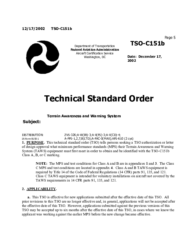 CAST - SE1 Output3: TSO-C151b - TAWS Technical Standard Order