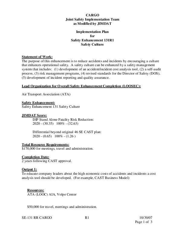 CAST - SE131 DIP Cargo Safety Enhancement 131R1 Safety Culture