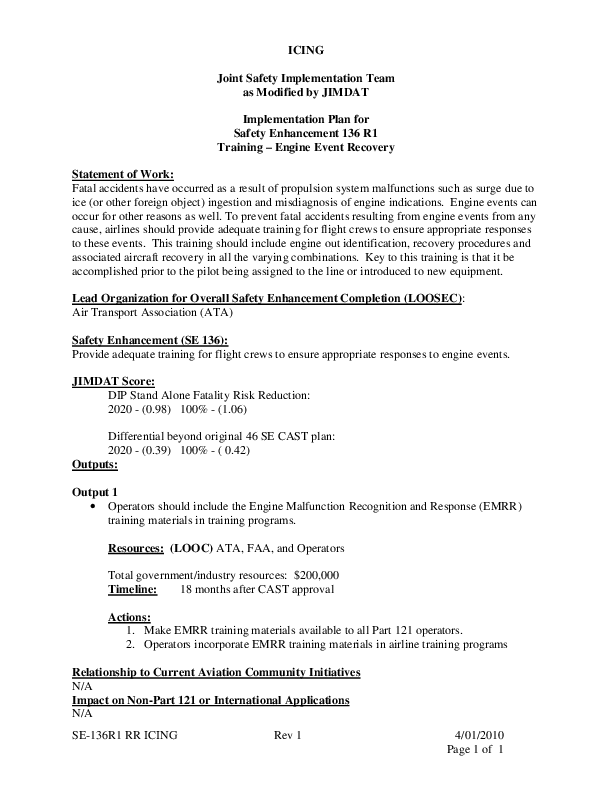 CAST - SE136 DIP Icing Safety Enhancement 136 R1 Training, Engine Event Recovery