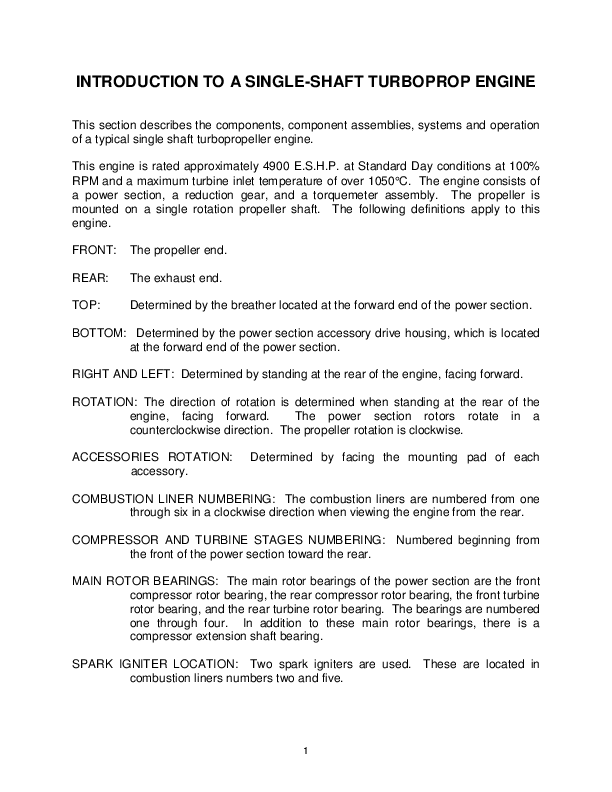 Training material developed by the FAA, UK CAA and industry committee on Turboprop Engine Malfunction Recognition and Response - Turboprop single shaft engine