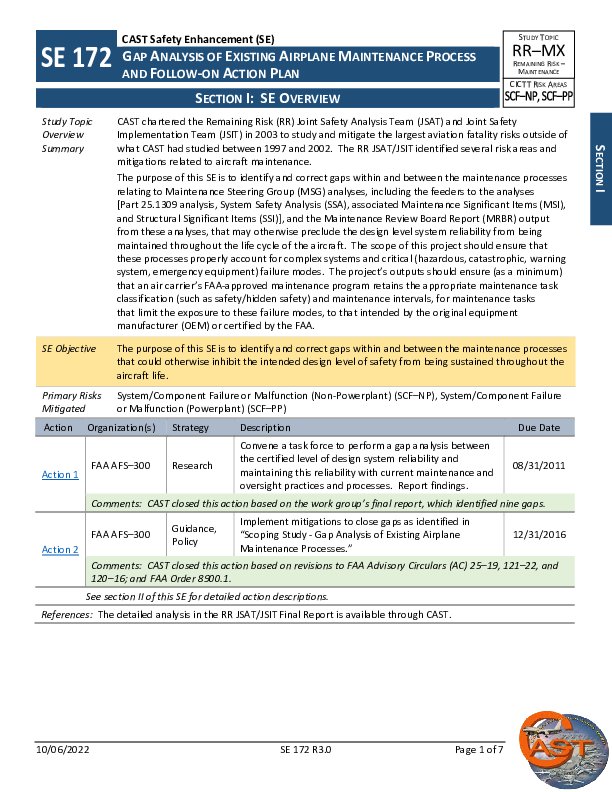 CAST - SE172R3.0 Gap Analysis of Existing Airplane Maintenance Process & Follow-on Action Plan