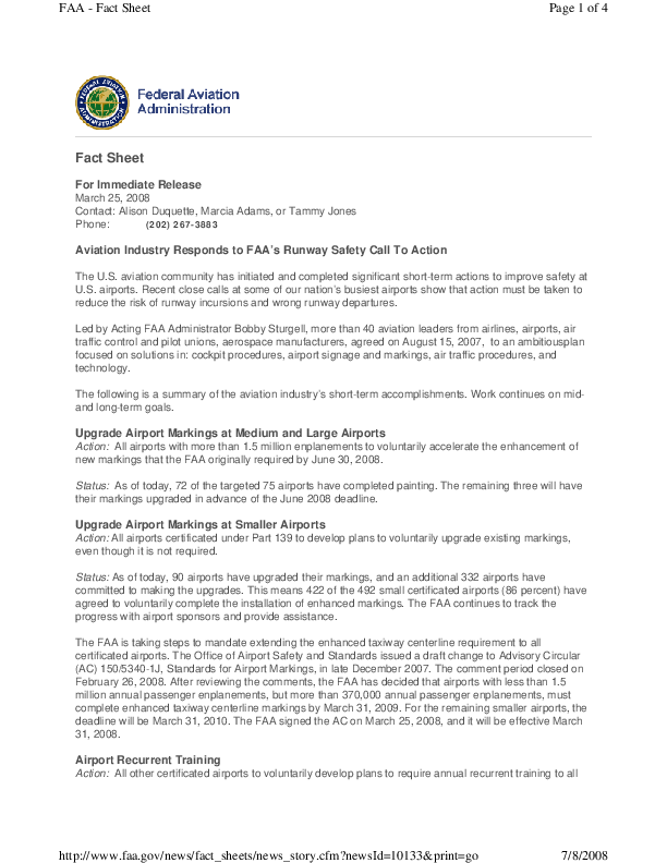 (CAST - SE178 Output2) Fact Sheet: Runway Safety Call to Action Status