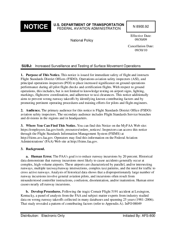 (CAST - SE179 Output2) N 8900.92 Increased Surveillance and Testing of Surface Movement Operations