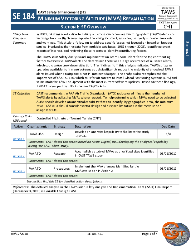 CAST - SE184R1.0 DIP TAWS Minimum Vectoring Altitude Reevaluation