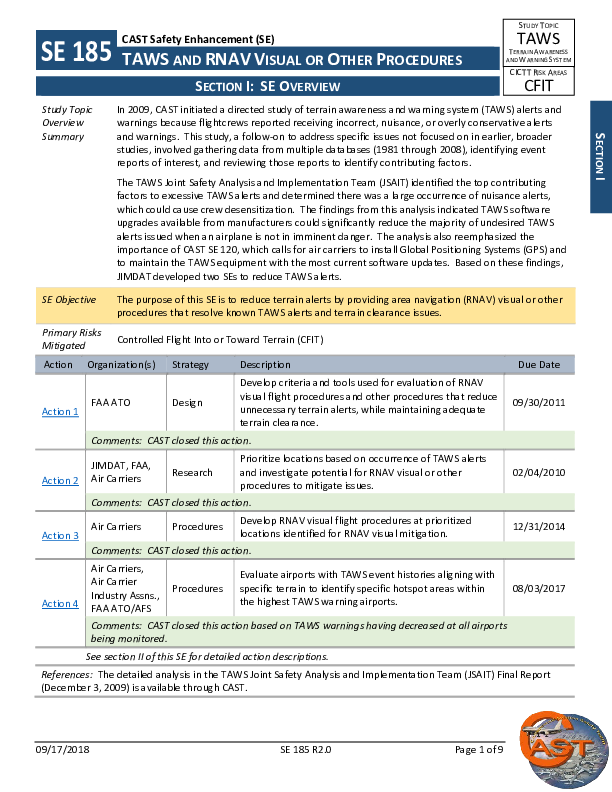 CAST - SE185R2.0DIP - TAWS and RNAV Visual or Other Procedures