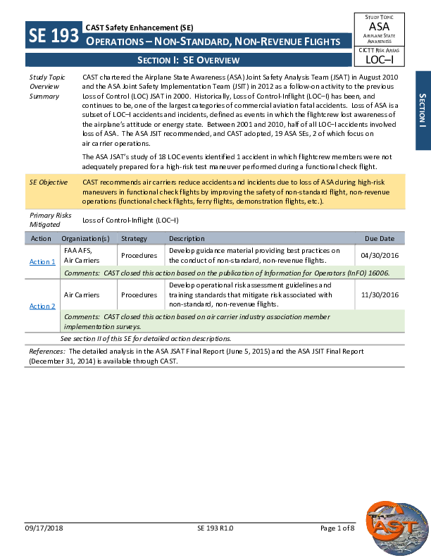 CAST - SE193R1.0 DIP ASA Operations Non-Standard, Non-Revenue Flights