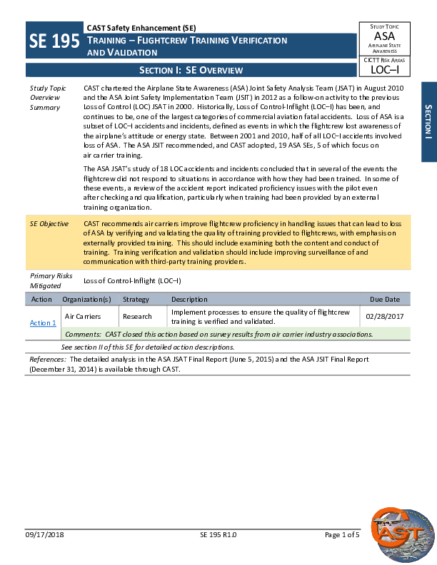 CAST - SE195R1.0 DIP ASA Training Flight Crew Training Verification and Validation