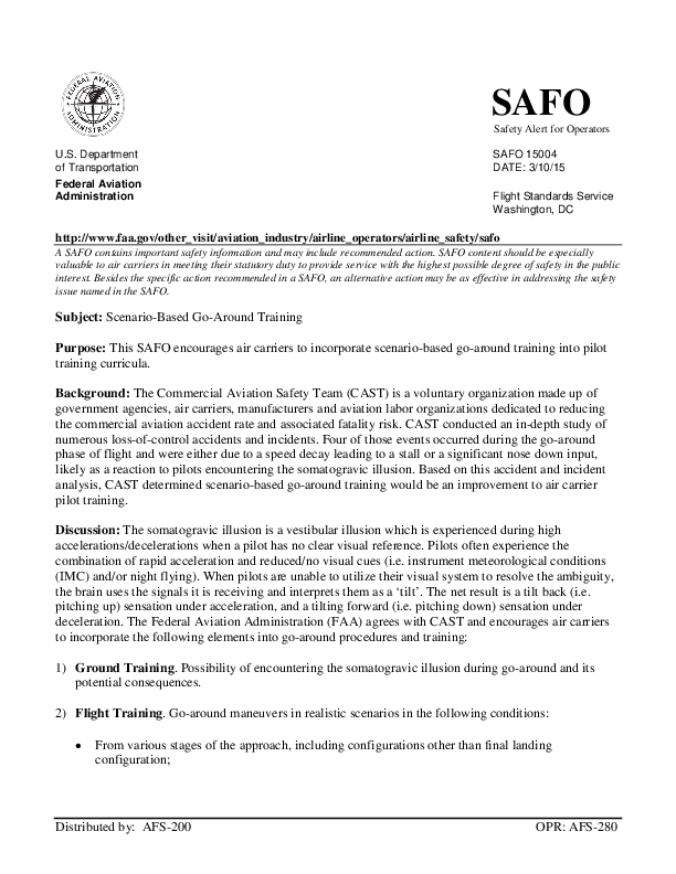 CAST - SE198 Output1 - SAFO 15004 Scenario-Based Go-Around Training