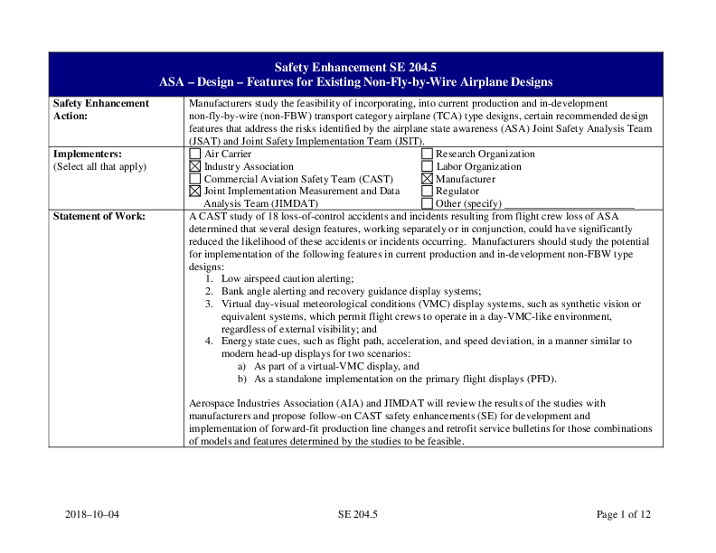 CAST - SE204R0.5 DIP ASA Design Features for Existing non-Fly-by-Wire Airplane Designs