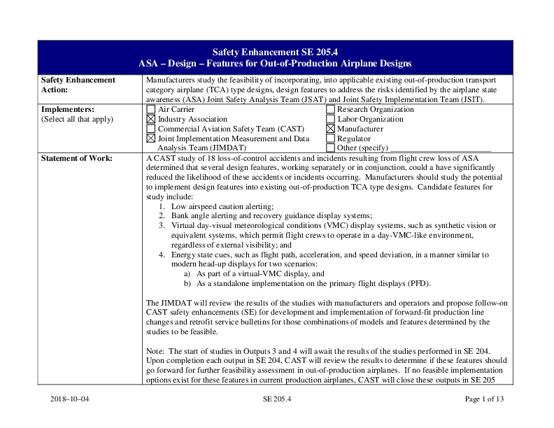 CAST - SE205R0.4 DIP ASA Design Features for Out-of-Production Airplane Designs