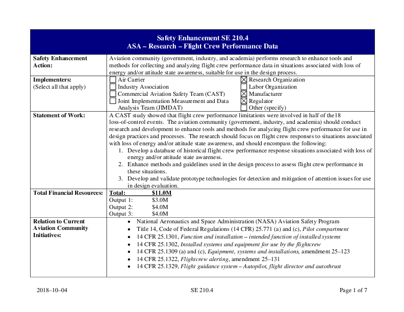 CAST - SE210R0.4 DIP ASA Research Flight Crew Performance Data