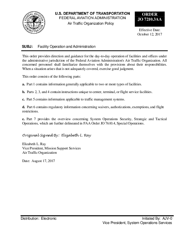 FAA Order JO 7210.3AA, Facility Operation and Administration