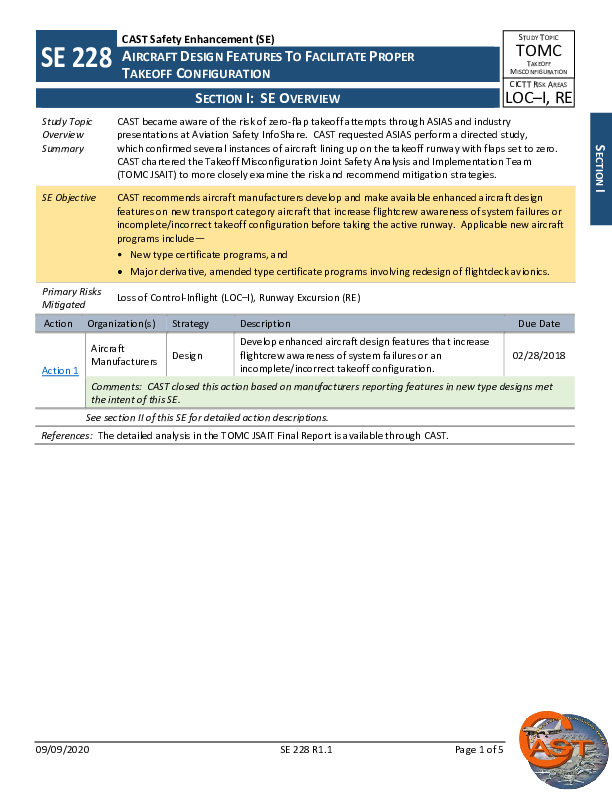 CAST - SE228 DIP: TOMC - Airplane Design Features to Facilitate Proper Takeoff Configuration