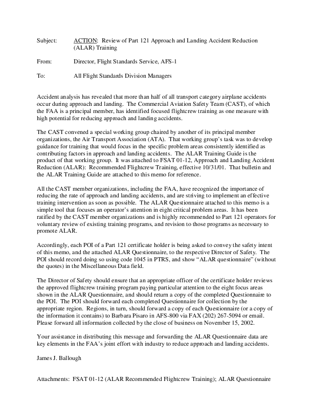 CAST - SE23 Output2 - Review of Part 121 Approach and Landing Accident Reduction (ALAR) Training