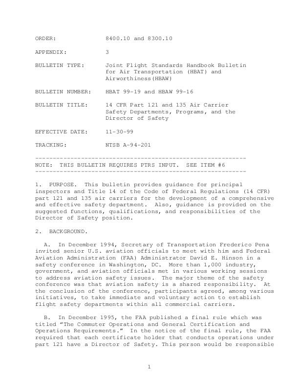 CAST - SE24: Output1 - HBAT 99-19 HBAW 99-16 4 CFR Part 121 and 135 Air Carrier Safety Departments,