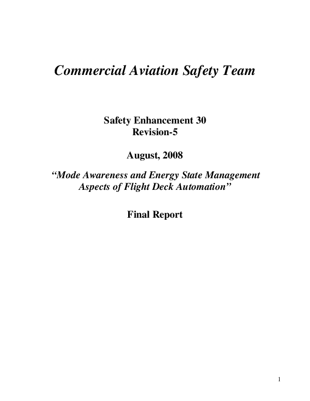 CAST - SE30 Output1 - Mode Awareness and Energy State Management Aspects of Flight Deck Automation