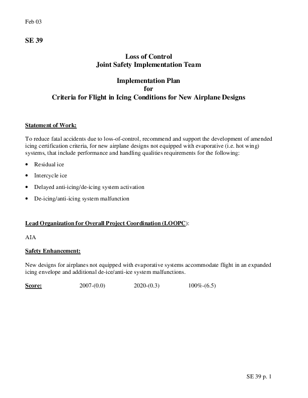 Detailed Implementation Plan for Safety Enhancement 39 - Loss of Control (LOC) Basic Airplane Design Icin