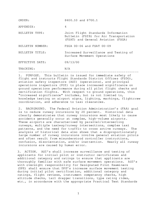 CAST - SE60 Output1 - FSGA 00-06 and FSAT 00-09: Increased Surveillance and Testing of Surface Movem