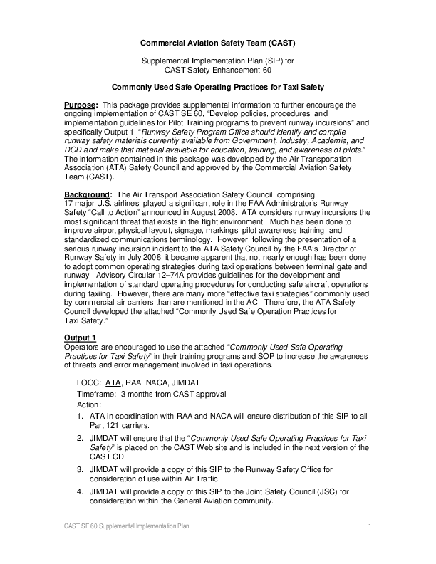 CAST - SE60 SIP Commonly Used Safe Operating Practices for Taxi Safety