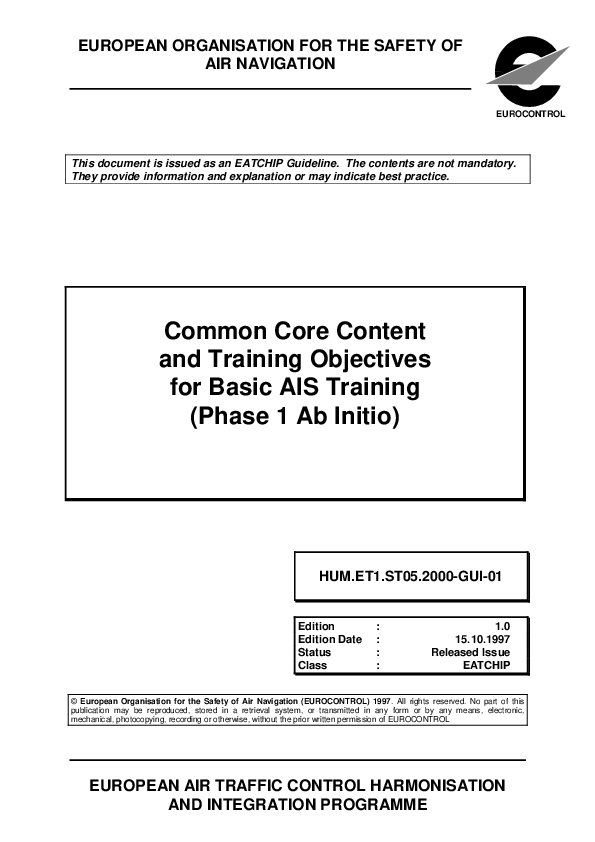 The creation of a set of Common Core Content and Training Objectives for the training of ab initio AIS personnel will assist in the harmonisation of operational practices in the Aeronautical Information Services.
