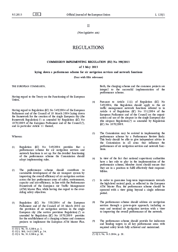 Commission Implementing Regulation (EU) No 390/2013 of 3 May 2013 laying down a performance scheme f