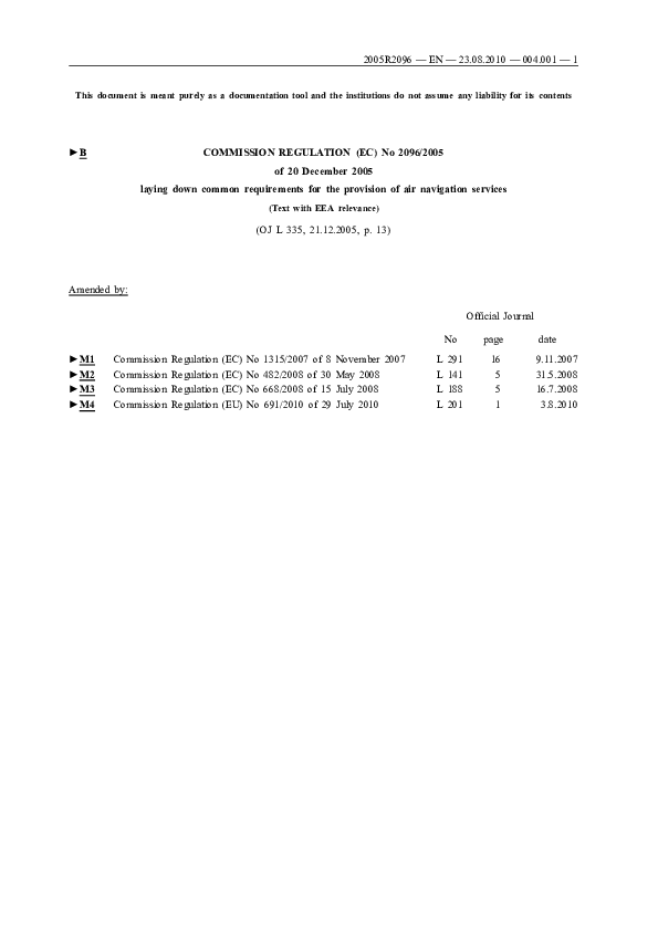 Commission Regulation (EC) No 2096/2005 - Common requirements for the provision of air navigation se
