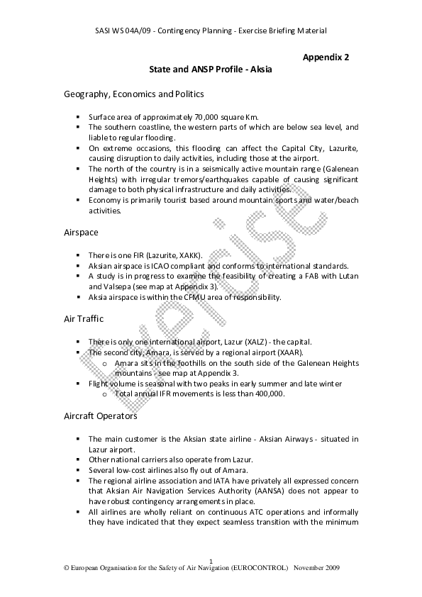 This document shows information about the state and the ANSP profile of the fictive Aksia, required for an exercise.