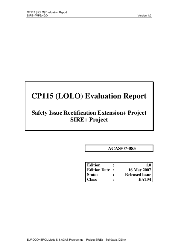 CP115 (LOLO) Evaluation Report Safety Issue Rectification Extension+ Project SIRE+ Project