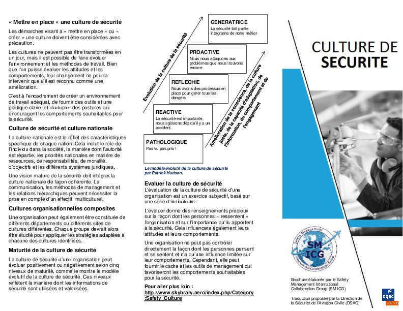 French language brochure on safety culture developed by French DGAC and SM ICG
