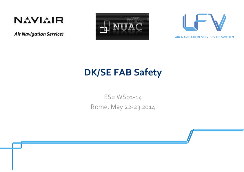 This presentation's objective is the establishment of DK-SE FAB and includes the structure of LFV/Naviair/NUAC, their common SMS structure and the performance plan.