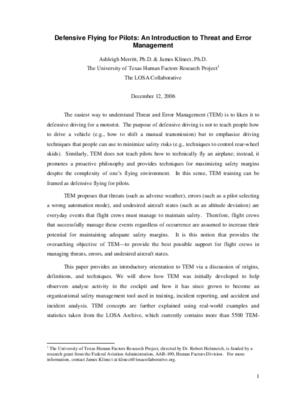 Defensive Flying for Pilots: An Introduction to Threat and Error