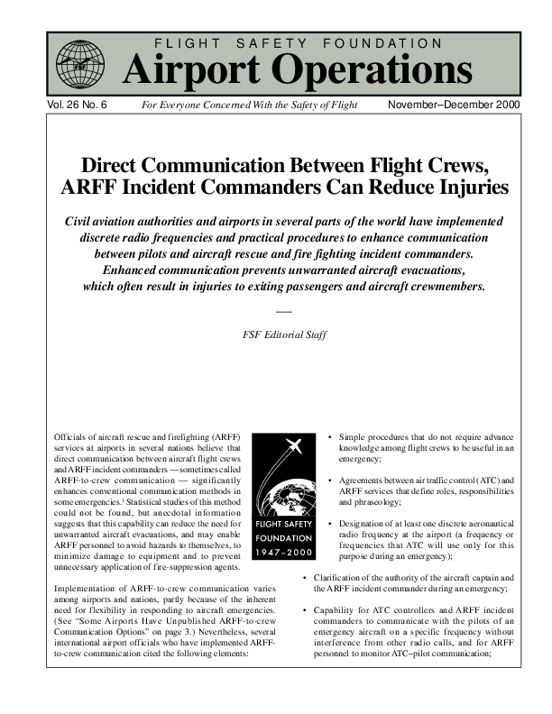 Direct Communication between Flight Crews, ARFF Incident Commanders Can Reduce Injuries