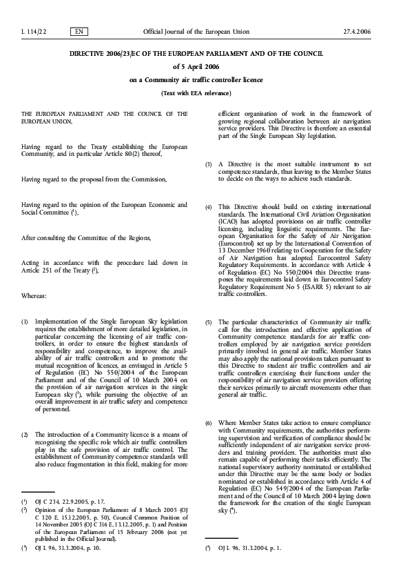 Directive 2006/23/EC of the European Parliament and of the Council of 5 April 2006 on a Community ai