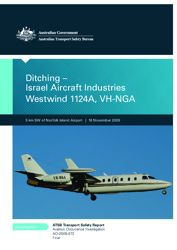 Ditching – Isreal Aircraft Industries Westwind 1124A, VH-NGA, 18 November 2009