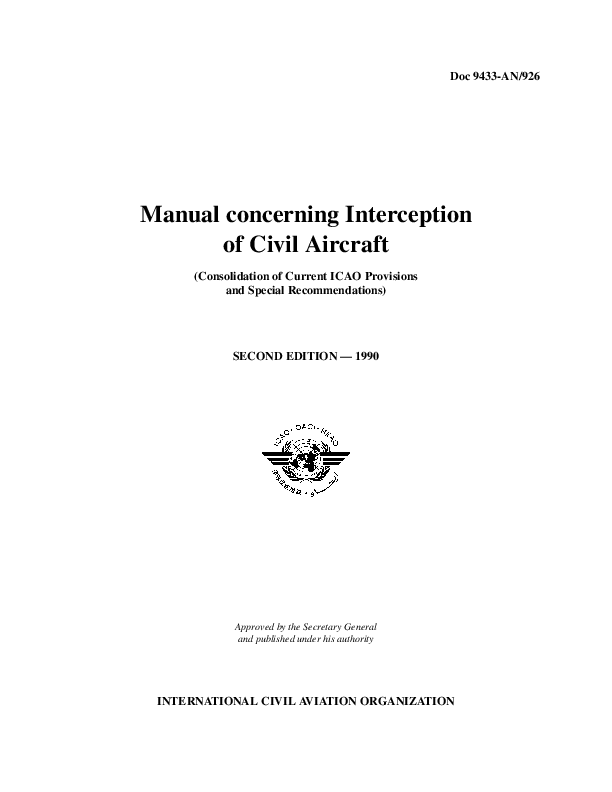 Doc 9433 AN/926 Manual concerning Interception of Civil Aircraft