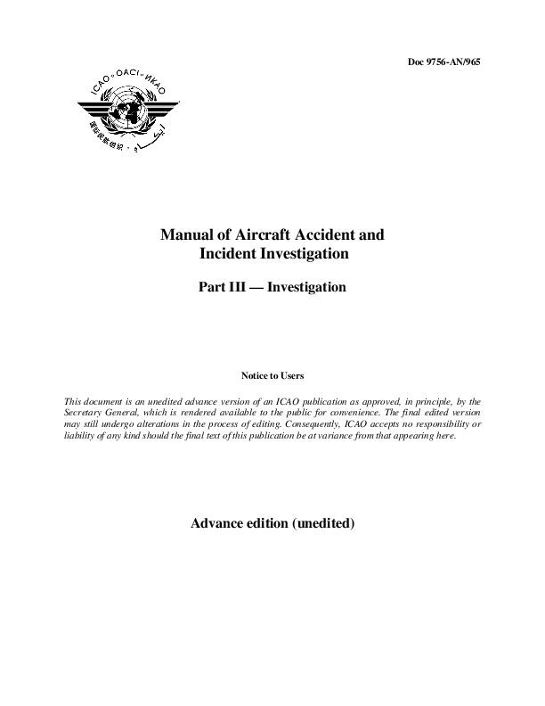 Doc 9756, Manual of Aircraft Accident and Incident Investigation, Part III Investigation