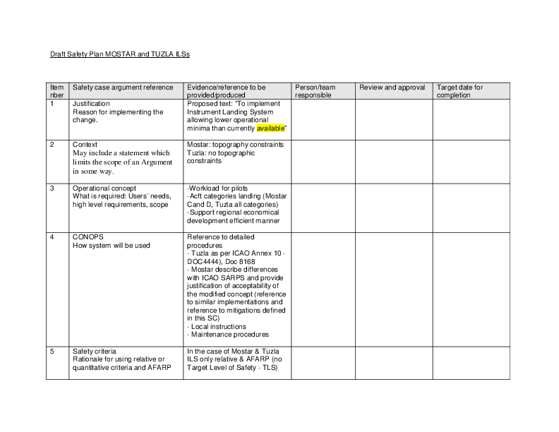 Draft Safety Plan MOSTAR and TUZLA ILS